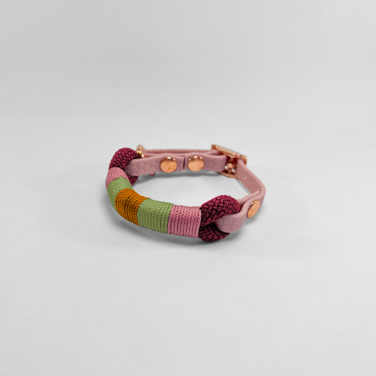 Il nostro collare misto in corda e fettuccia Hexa è il perfetto equilibrio tra stile, resistenza e funzionalità.