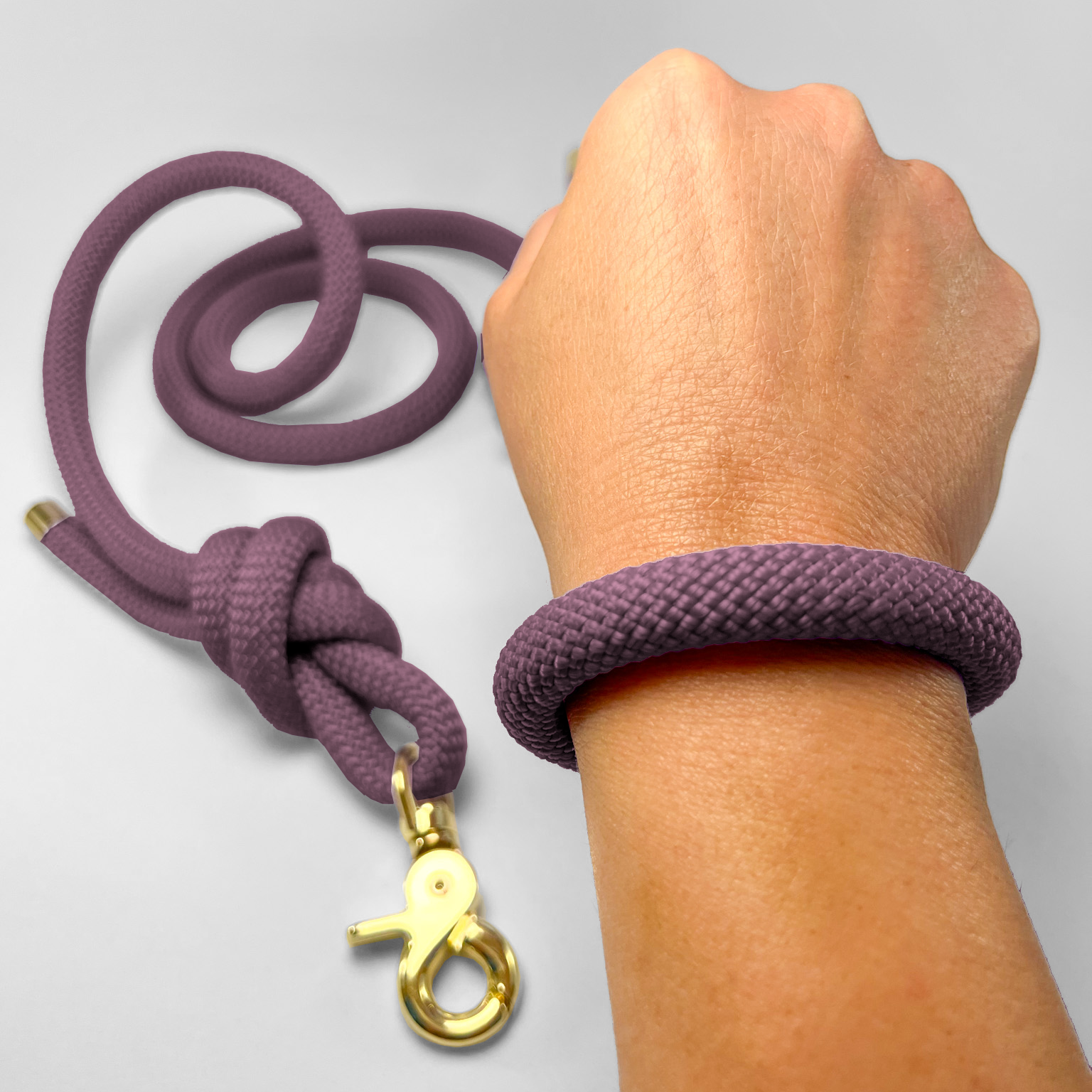 Il guinzaglio con corda da 10 mm è dotato di un fermapolso, pensato per permetterti di indossarlo comodamente come un bracciale.