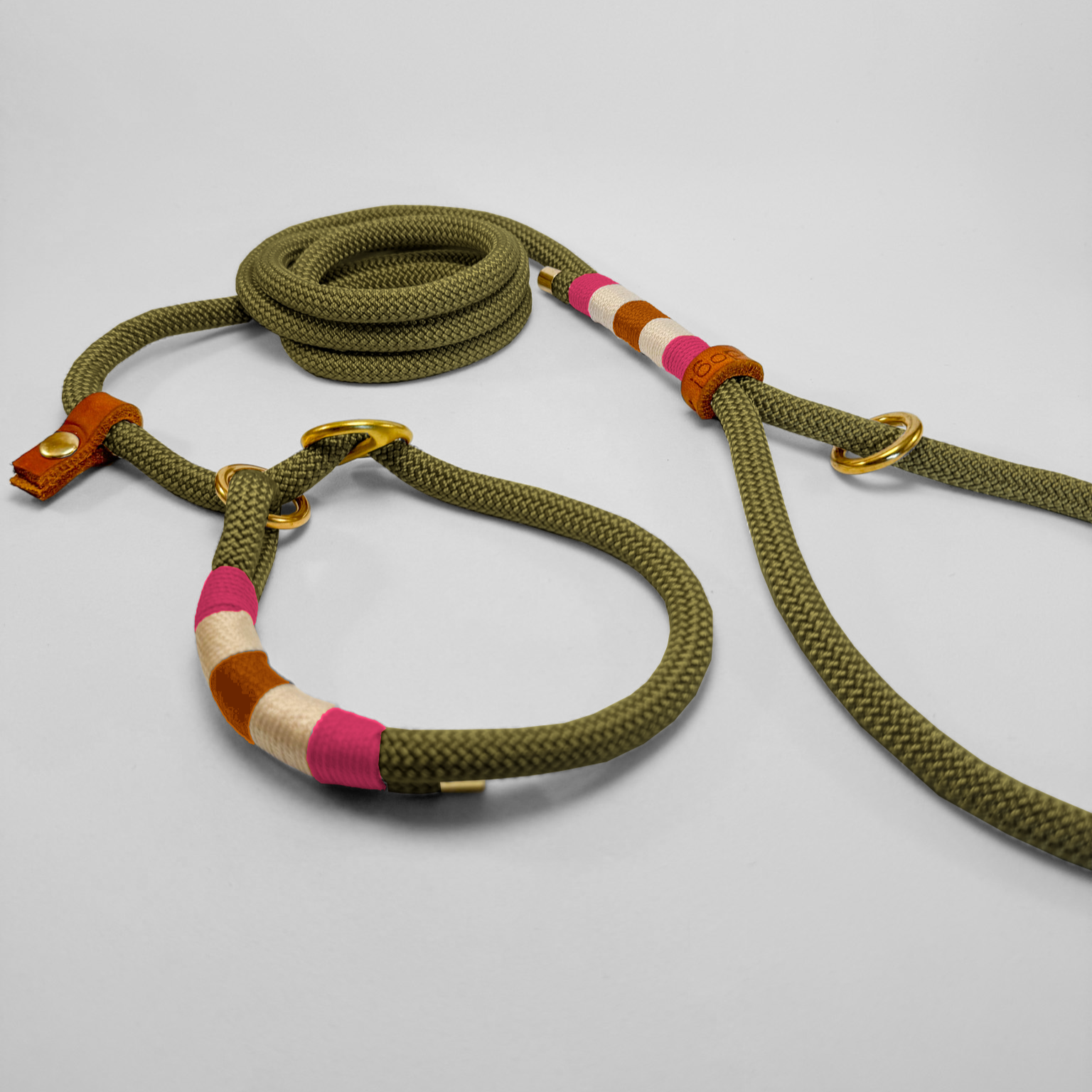 Come funziona: Basta far scivolare il guinzaglio attorno al collo del cane e tirare delicatamente per regolare la misura, in modo che sia sicuro ma confortevole. Grazie al design a scorrimento e alla robusta struttura in corda, il guinzaglio garantisce sicurezza senza necessitare di clip o fibbie aggiuntive, permettendo un controllo immediato. Inoltre, il fermo regolabile impedisce al guinzaglio di allentarsi eccessivamente, mantenendolo in posizione senza esercitare pressione non necessaria.